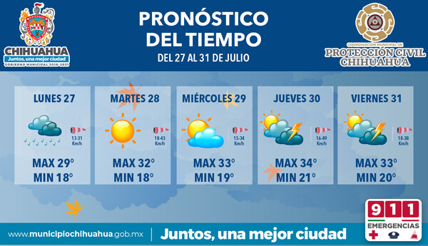 Al respecto, el titular de la dependencia municipal, Joel Estrada Castillo, pidió a los chihuahuenses seguir las recomendaciones que constantemente se emiten para evitar incidentes relacionados al calor o las lluvias, además de continuar acatando las medidas que emiten las autoridades sanitarias debido a la actual pandemia por COVID-19 y evitar más propagaciones, pues esto no ha permitido avanzar al siguiente color en la semaforización.