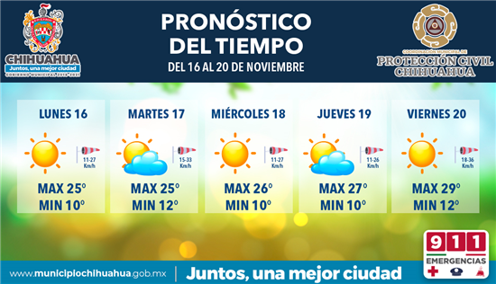 Días templados y mayormente soleados, pero con noches y madrugadas frescas es lo que la Coordinación Municipal de Protección Civil espera para esta semana, de acuerdo al pronóstico que emite el Servicio Meteorológico Nacional de CONAGUA, por lo cual es importante tomar las precauciones necesarias para evitar enfermedades respiratorias.