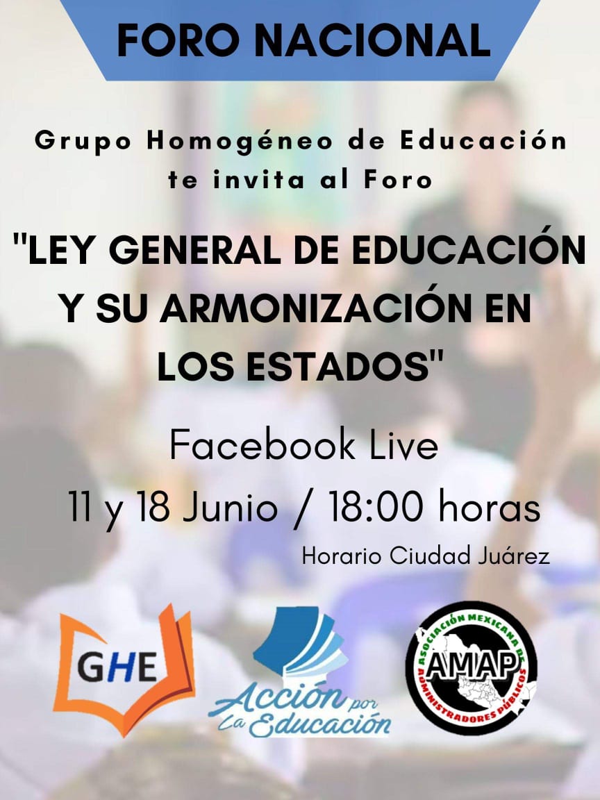 El Grupo Homogéneo de Educación (GHE), agrupación filial del Partido Acción Nacional que aglutina a maestros, estudiantes, padres de familia, y demás actores involucrados en el quehacer educativo del país, convoca a participar en un foro nacional para analizar la recientemente aprobada Ley General de Educación y los efectos que está generando ya su armonización con las leyes estatales, programa que se desarrollará de forma virtual y en el que