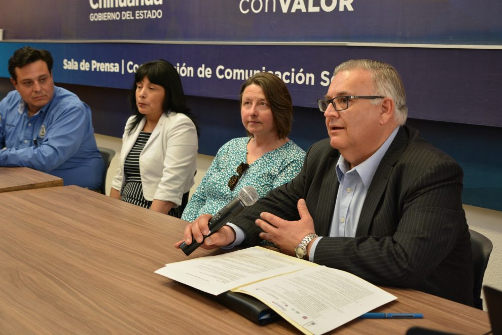 En rueda de prensa, el secretario de Educación y Deporte, Carlos González Herrera, brindó un reconocimiento a las doctoras Teresa Alonso Rasgado y Sharon Ellis de Queen Mary London University, por su apoyo a las y los estudiantes chihuahuenses para que puedan cursar su maestría en alguna de las tres universidades inglesas que conforman este consorcio.