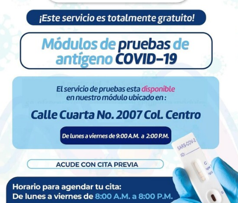 El Gobierno Municipal de Chihuahua, a través del Instituto Municipal de Prevención y Atención a la Salud (IMPAS), continúa ofreciendo el servicio gratuito de pruebas de COVID-19 a todas las personas que agenden una cita llamando al 072 en las extensiones 2259, 2260 o 2261 de lunes a viernes, en un horario de 8:00 a 20:00.