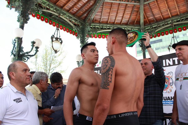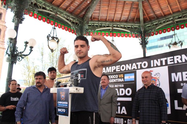 Frente a un importante público chihuahuense y aficionados reunidos en Plaza de Armas, pasaron uno a uno los boxeadores arriba de la báscula y con la