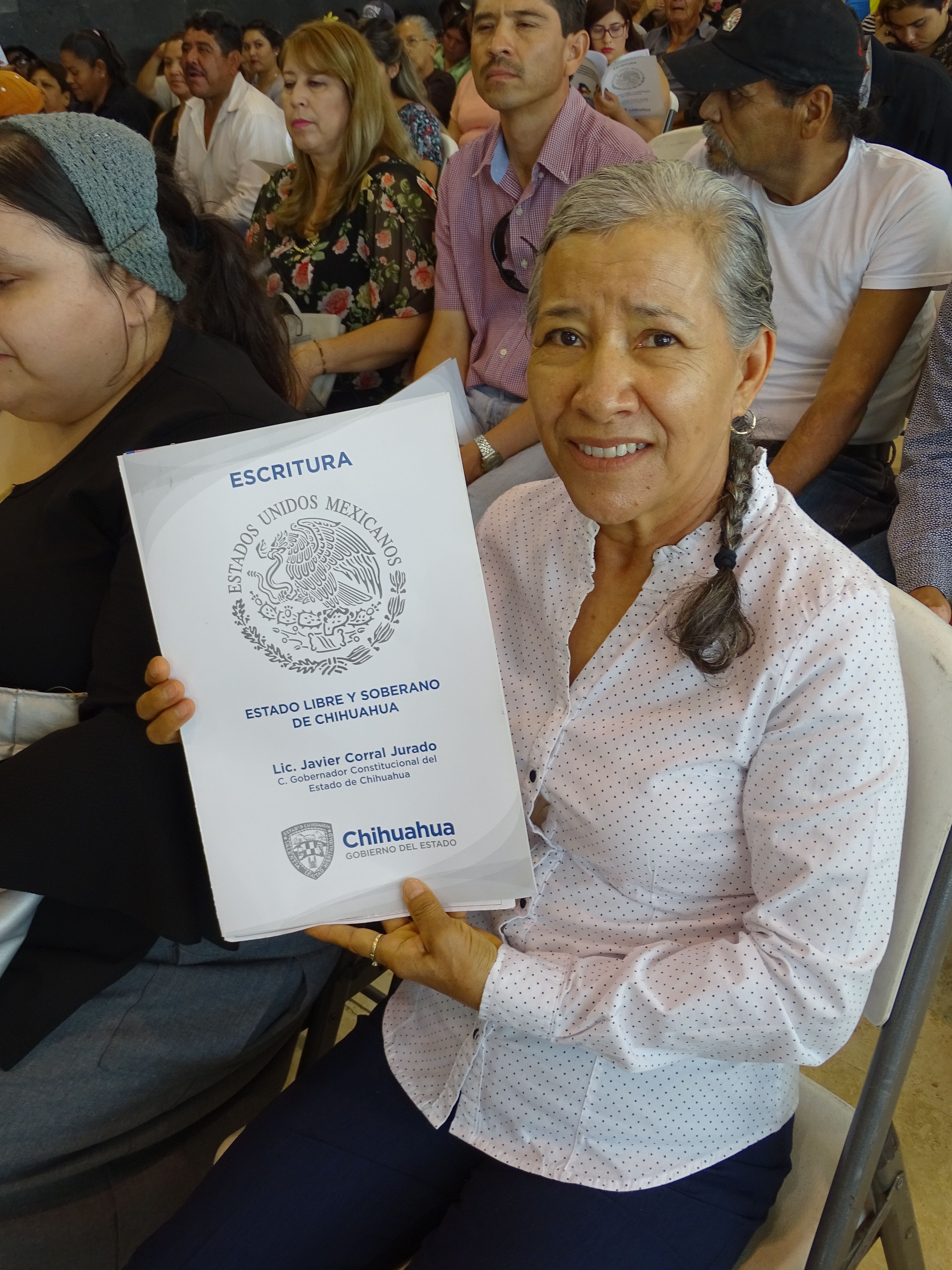 Para 100 familias en situación vulnerable del municipio de Delicias, después de 20 años de espera, finalmente se hizo realidad la anhelada seguridad jurídica de su patrimonio, con la entrega de escrituras de sus viviendas en las colonias Laderas del Norte primera y II etapa, Lázaro Cárdenas, Tapacolmes, Solidaridad, Emiliano J. Laing, Revolución, Abraham González y San Antonio II etapa.