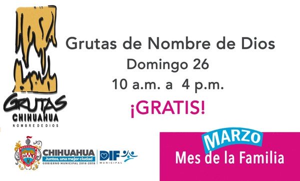 Con motivo de la celebración del mes de la familia el DIF Municipal invita este domingo 26 a la ciudadanía a asistir en familia a las Grutas de Nombre de Dios totalmente gratis con la intención de brindarles la oportunidad de convivir y conocer las maravillas que la naturaleza nos ofrece en este lugar.
