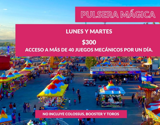 🔶 La pulsera Mágica de Espectaculares García es un brazalete que te dará acceso a los 40 juegos mecánicos por un día de operación en la feria Santa Rita Chihuahua 2023.