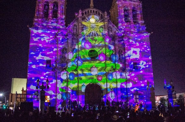 Navidad en la Ciudad arrancó con la proyección de un videomapping con temática navideña en la fachada de catedral en punto de las 6 de la tarde, realizándose una proyección cada media hora hasta concluir a las 8:30 de la noche.