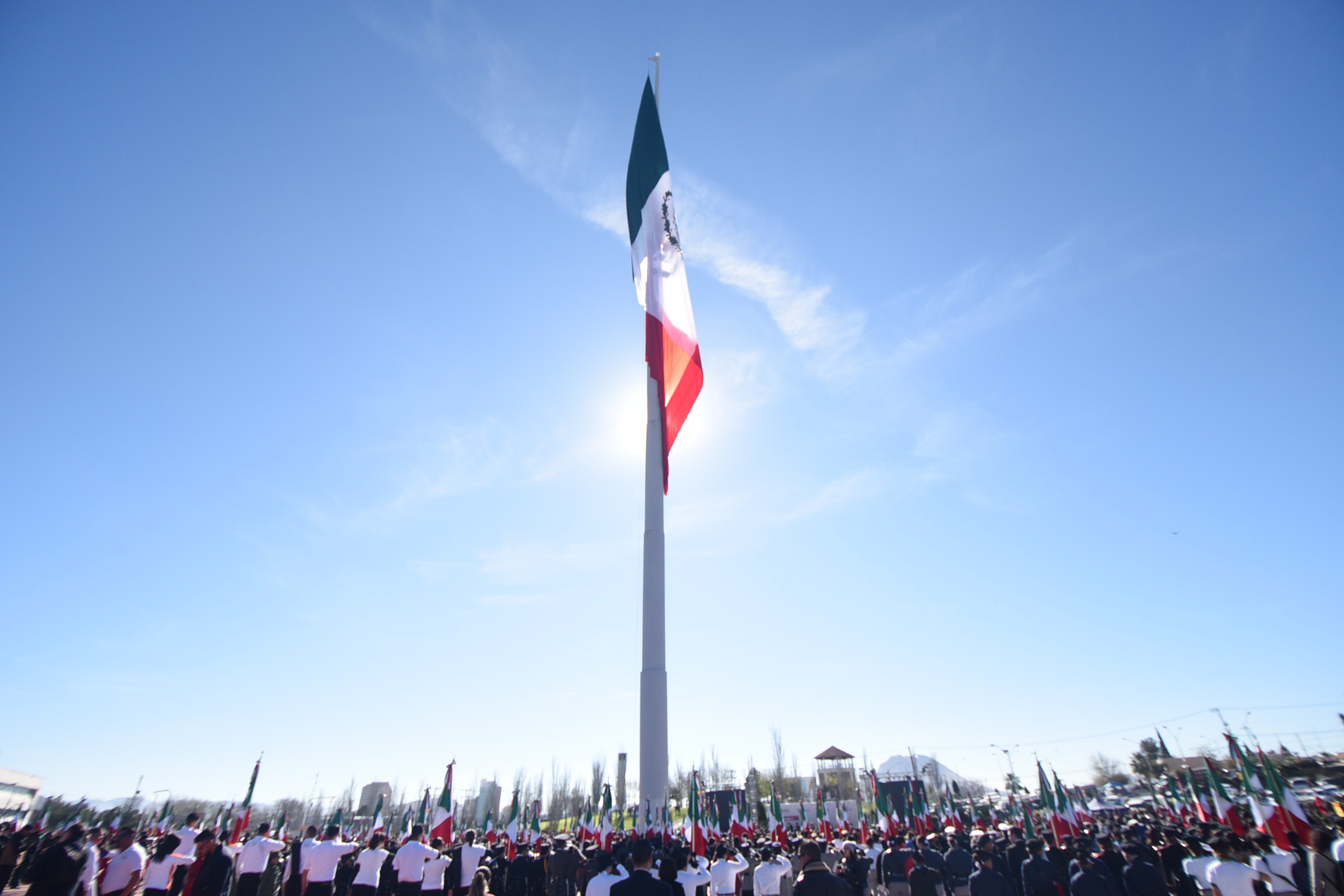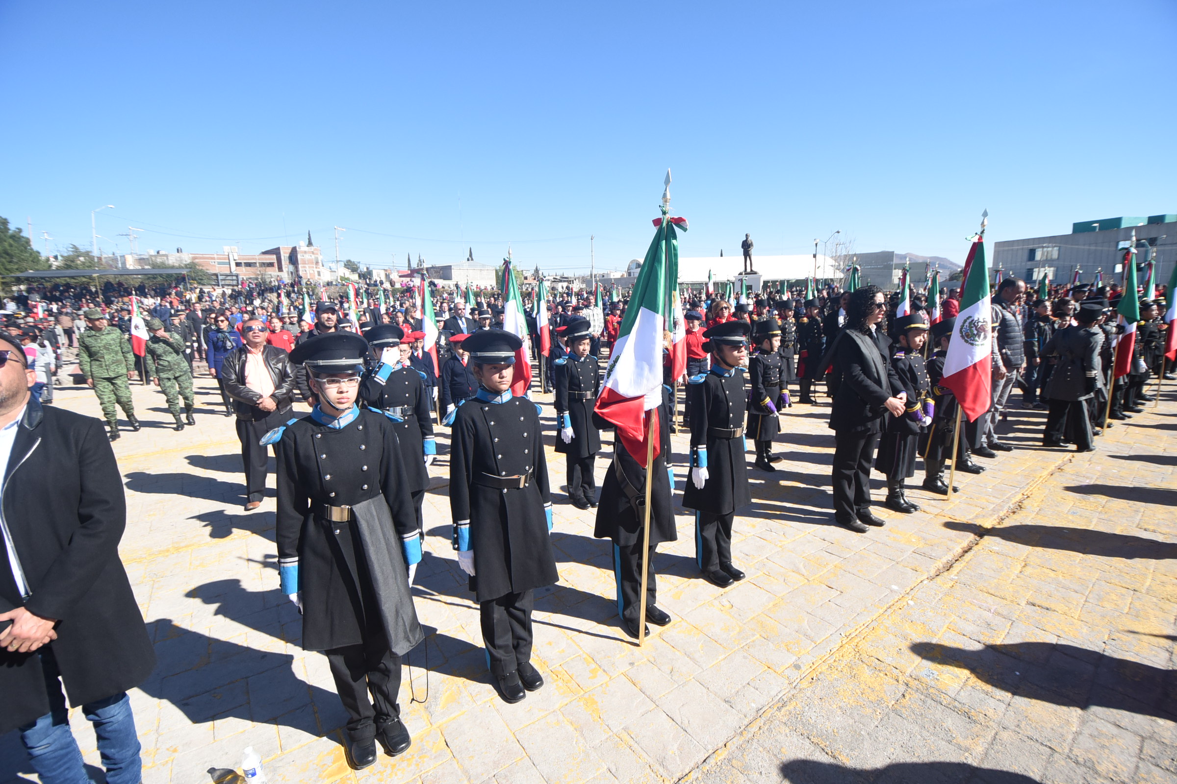 El evento cívico reunió a más de 5 mil personas, entre alumnos, militares, autoridades educativas, padres de familia y público en general y a escoltas de 189 planteles escolares de los niveles Básico, Medio superior y Superior, así como de asociaciones civiles de todo el estado.