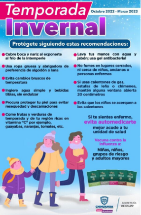 La Secretaría de Salud exhorta a la ciudadanía a implementar distintas medidas de prevención para evitar padecer algún accidente relacionado con la temporada invernal.