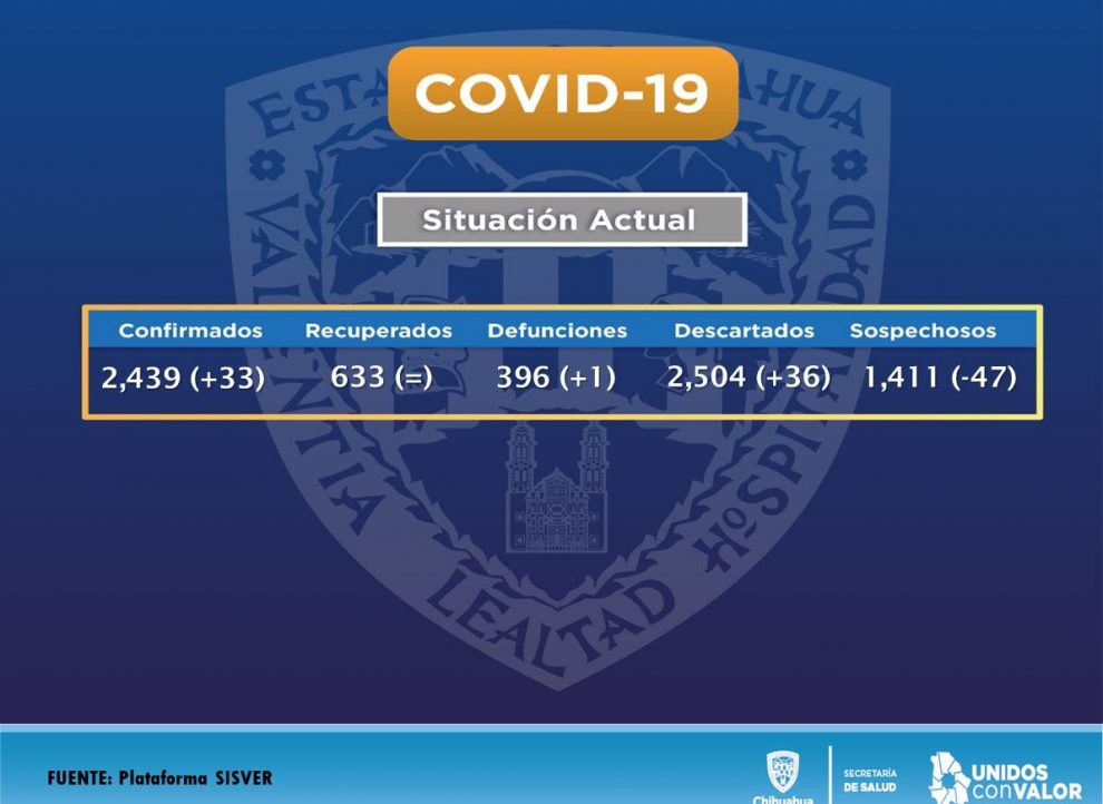 Aumentó en 33 los confirmados con respecto al informe del domingo; el número de fallecimientos es de 396 y hay mil 411 casos sospechosos