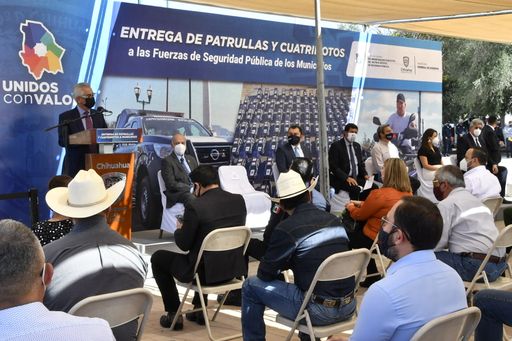Lo anterior, durante la ceremonia para la entrega simbólica a 43 presidentas y presidentes municipales, de 54 patrullas y 50 cuatrimotos, con inversión total del orden de los 38 millones 725 mil 612 pesos, y como parte de las acciones para el fortalecimiento de las instituciones de seguridad pública del estado.