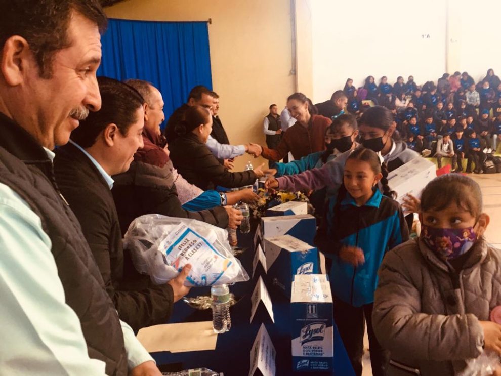 toallitas sanitizantes, además se otorgaron útiles y uniformes escolares a 27 preescolares y 21 primarias.