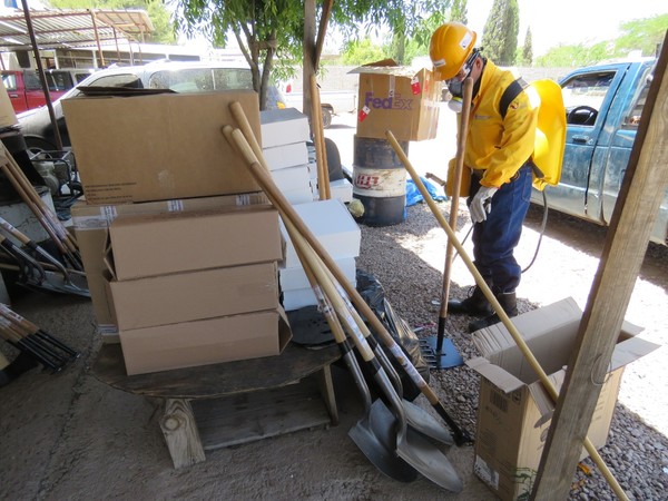 El monto por los implementos para el combate al fuego asciende a más de 250 mil pesos y constan de un paquete de: 2 machetes, 10 cascos, 4 rastrillos, 3 mochilas aspersoras, 2 talachos, 2 palas, 10 cantimploras con vaso, 10 pares de