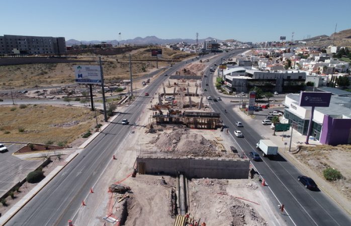 De acuerdo a los trabajos realizados esta semana, se colocó la terracería en las rampas, además de iniciar con los muros de tierra armada o placas de concreto, la obra registra un avance del 20 por ciento, incluyendo trabajos de cambios de tubería de agua potable ya obsoleta, lo que mejorará la red de este servicio, y se sigue laborando en el armado con acero de los cabezales que se ubicarán sobre las columnas.