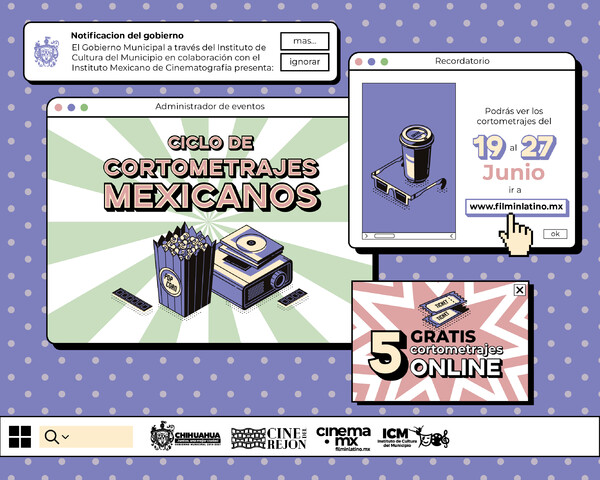 Si te gusta el cine y quieres ver gratuitamente “El ciclo de cine mexicano”, el Gobierno Municipal a través del Instituto de Cultura del Municipio (ICM) invita a ver los cortometrajes más destacados de este ciclo, que serán difundidos del 19 al 27 de junio en la página de Filmin Latino.