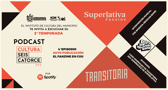 El Gobierno Municipal a través del Instituto de Cultura del Municipio (ICM) te invita a escuchar desde casa, su nuevo episodio “Auto publicación, el fanzine CUU” de la segunda temporada de su podcast “Cultura Seis Catorce” en la plataforma Spotify, en donde te llevará a conocer más sobre dos publicaciones independientes de nuestra ciudad.