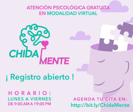 Gobierno del Estado trabaja de manera continua para ofrecer a la sociedad chihuahuense, espacios idóneos para promover el sano desarrollo, por lo cual pone a disposición de la población el enlace https://bit.ly/ChidaMente, así como el teléfono (614) 4293300 Ext. 15942 y el correo chidamente.ichijuv@gmail.com brindar información, así como para registrarse y recibir atención psicológica especializada.
