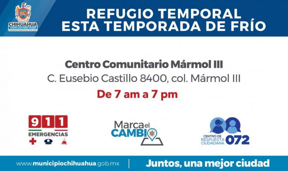 Debido al ingreso del frente frío número 17 que ocasionó un descenso considerable en la temperatura de este lunes, y que continuará durante esta semana en la capital del Estado, el Gobierno Municipal habilitó el refugio temporal ubicado en la colonia Mármol III.