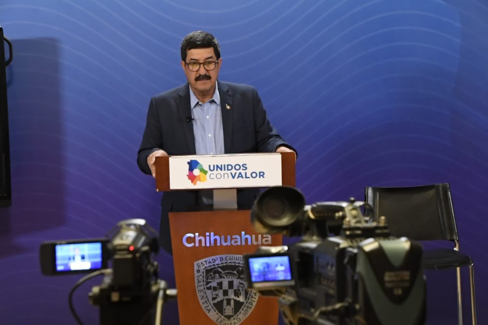 El gobernador Javier Corral se enlazó vía Internet desde Palacio de Gobierno en la ciudad de Chihuahua, para el evento de inauguración de la remodelación y ampliación del Parque Morelos, en Jiménez, obra realizada con inversión conjunta Estado-Municipio de 4 millones de pesos (mdp).