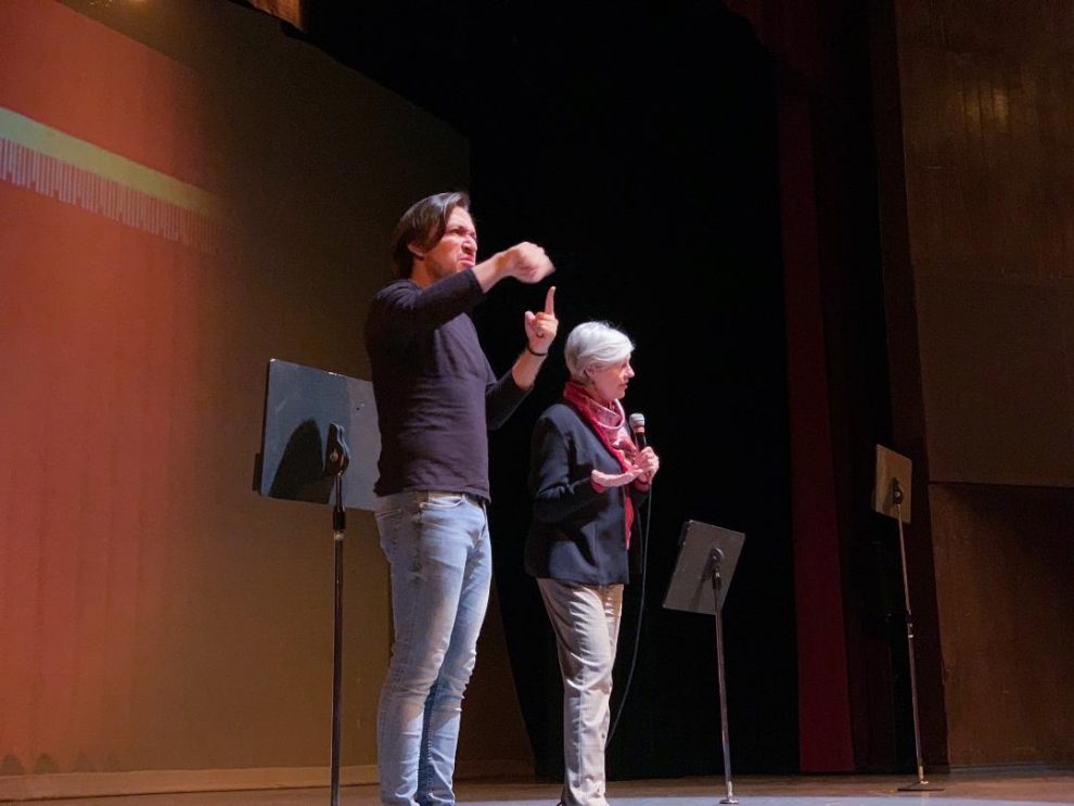 Minutos después subieron a escena la actriz y los actores de la compañía “Seña y Verbo” a loque el público, conformado mayormente por niñas y niños escolares de nivel básico, respondió con entusiasmo.