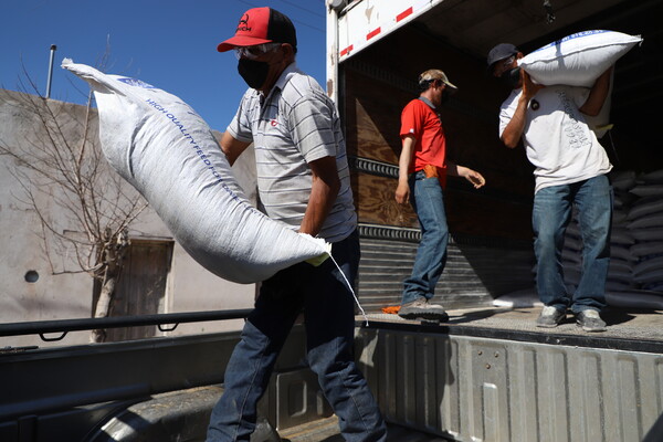 Destacó la solidaridad de la presidenta municipal, Maru Campos, en este tipo de entregas que congregan a quienes producen los alimentos y que, en ocasiones como esta, requieren ayuda por la sequía que amenaza sus hatos ganaderos.
