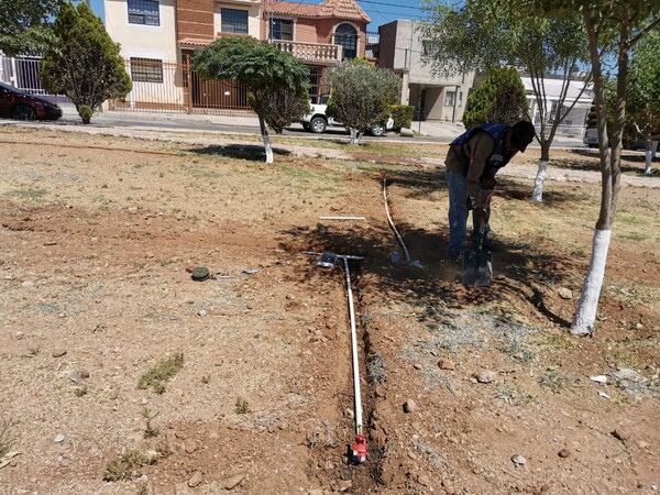 El Gobierno Municipal, a través de la Dirección de Mantenimiento Urbano, llevó a cabo la instalación de un sistema de riego en el parque conocido como Jardín Guerrero, ubicado en la colonia Paseos de Chihuahua al norte de la ciudad.