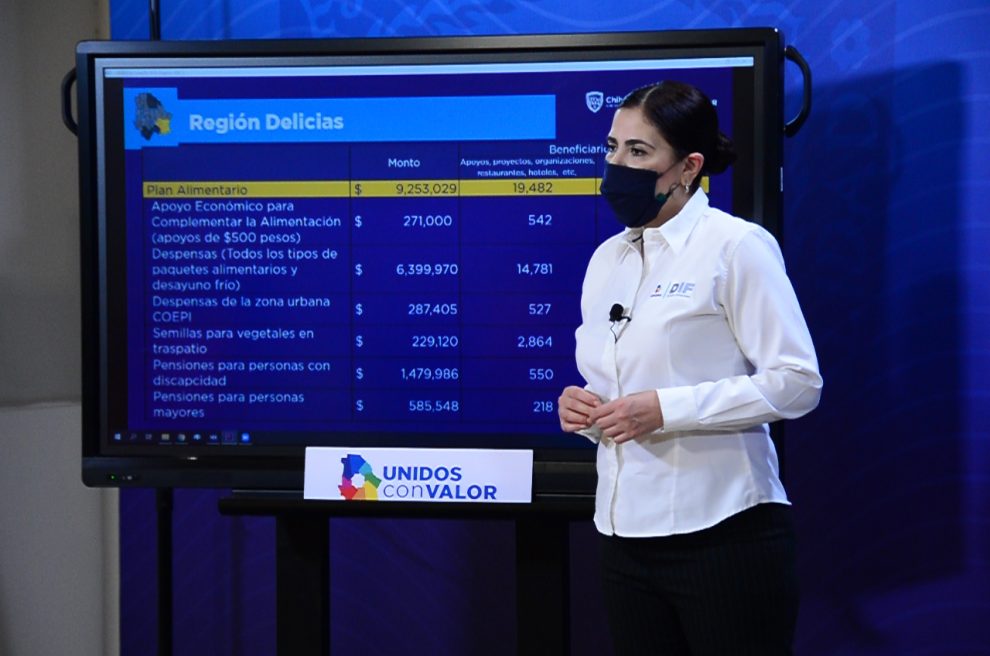 Al participar en el programa Chihuahua Adelante del gobernador Javier Corral, que se transmite en las redes sociodigitales del Gobierno del Estado, dio a conocer que los apoyos se entregan mediante 19 mil 482 acciones, en el marco del Plan Emergente de Apoyo y Protección a la Salud, Empleo e Ingreso Familiar.