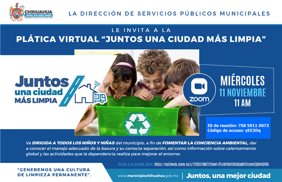 El Gobierno Municipal a través de la Dirección de Servicios Públicos realiza un programa de pláticas virtuales a fin de dar a conocer a la ciudadanía en general, algunos temas de interés como el Reglamento de Servicios Públicos, Limpieza Urbana, Programa de Destilichadero y manejo adecuado de la basura.