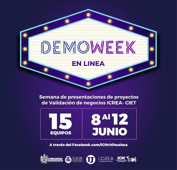 El Gobierno Municipal hace una atenta invitación a la ciudadanía para presenciar la demostración “DEMO WEEK” que por primera vez, se realizará de manera virtual y donde se contará con la participación de 15 equipos, de los cuales 11 forman parte del proyecto iCREA Emprendimiento Cuultural.