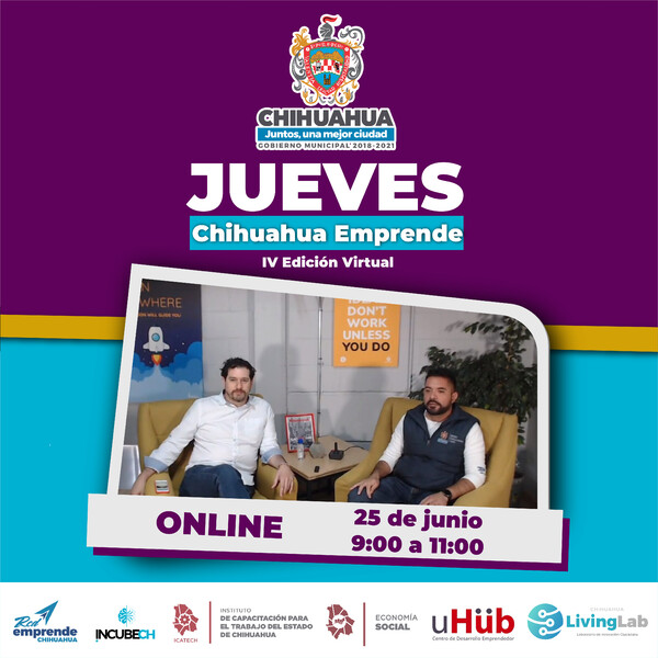 Con el fin de seguir trabajando para la ciudadanía durante la contingencia del COVID 19, este jueves 25 de junio se realizará la cuarta edición del taller Jueves Chihuahua Emprende Virtual, para brindarles herramientas a emprendedores y micro, pequeños y medianos empresarios.
