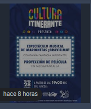El Gobierno Municipal, a través del Instituto de Cultura del Municipio (ICM), invita a las familias chihuahuenses a participar en las actividades del programa Cultura Itinerante, que estará el próximo viernes 28 de octubre, a las 7:00 pm, en la colonia Avícola, ubicada al noroeste de la ciudad.