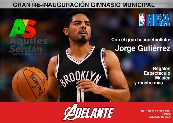 Jorge Gutiérrez, exjugador de la NBA y seleccionado nacional, estará mañana martes a las cuatro de la tarde como invitado especial en la reinauguración del gimnasio de Santa Eulalia, municipio de Aquiles Serdán.