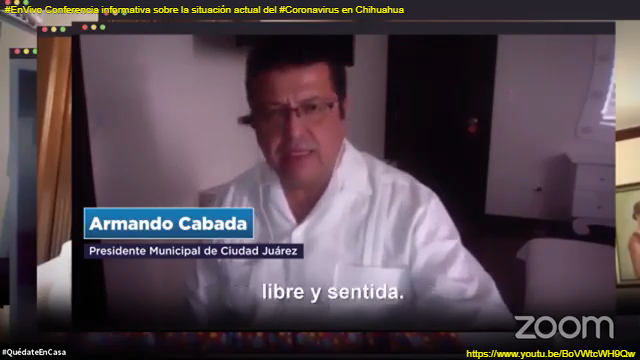 En el video compartido por el mandatario estatal, también participó el alcalde Armando Cabada, quien llamó a los juarenses a resistir y enfrentar la pandemia con generosidad y solidaridad, acatando las reglas que marcan las autoridades sanitarias.
