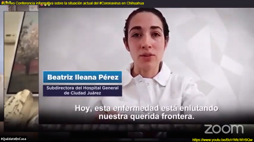 “Hoy esta enfermedad está enlutando nuestra querida frontera, el virus se encuentra rondando los hogares de todas las clases sociales porque no es una enfermedad de ricos o pobres”, Beatriz Ileana Pérez, subdirectora del Hospital General de Juárez.