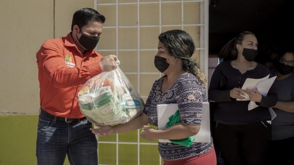 La presienta del Dif Municipal de Aquiles Serdan, Teresa Erives, y el alcalde, Ariel Fernández, efectuaron una entrega de apoyos alimentarios a habitantes de la colonia Laderas II, como parte de las acciones enfocadas a ayudar a las familias a mitigar los efectos de las medidas preventivas de contagios de Covid-19.