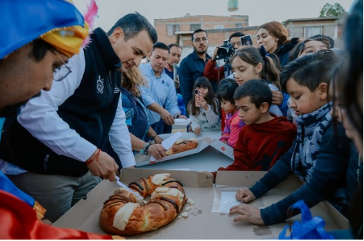 Al concluir la intervención del Presidente Municipal, compartieron con las niñas, niños, sus papás y abuelos, la tradicional rosca, para celebrar en familia la llegada de los Reyes Magos.