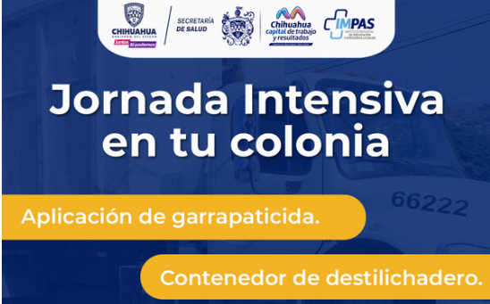 El Gobierno Municipal de Chihuahua, a través del Instituto Municipal de Prevención y Atención a la Salud (IMPAS), llevará la “Jornada Intensiva en Tu Colonia” a las familias de la colonia Vistas Cerro Grande, del 26 al 30 de septiembre con actividades desde las 09:00 a las 18:00 horas.