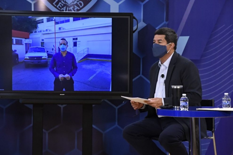Para explicar todo el proceso que se está llevando a cabo, así como las labores y los detalles de la unidad móvil COVID-19 en Juárez, que se encuentra instalada en el estacionamiento del Hospital General de esa ciudad fronteriza, el doctor Arturo Valenzuela Zorrilla, director médico en la Zona Norte de la Secretaría de Salud, realizó un recorrido por el área que se compone de carpas que están dispuestas en forma de “H”.