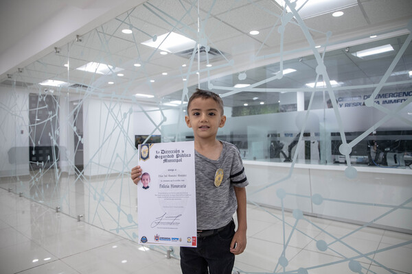 Dylan Joel pequeño de cinco años, oriundo de Guadalupe y Calvo, y quien a su corta edad ha expresado su deseo de ser policía, fue nombrado Policía Honorario por parte del director de Seguridad Pública Municipal, Gilberto Loya Chavez, quien le otorgó las insignias oficiales que lo acreditan como miembro de la corporación.