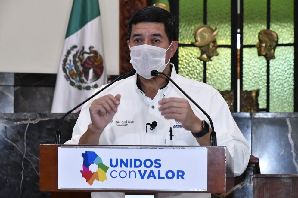 El gobernador Javier Corral presenta los detalles de la nueva emisión que actualiza las medidas de prevención y mitigación frente a la pandemia de COVID-19, en relación al Acuerdo 049 publicado el 25 de marzo y en sintonía con el Gobierno Federal