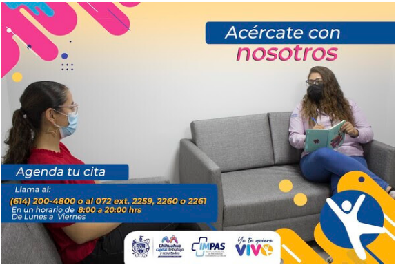 Para el alcalde Marco Bonilla, la salud mental es un tema fundamental para el desarrollo integral de las familias chihuahuenses, por ello el Gobierno Municipal de Chihuahua, a través del Instituto Municipal de Prevención y Atención a la Salud (IMPAS), invita a la ciudadanía a hacer uso del servicio de consulta psicológica, que se brinda en las instalaciones de la dependencia en calle Sexta, en esquina con calle Francisco Xavier Mina, en la colonia Centro.