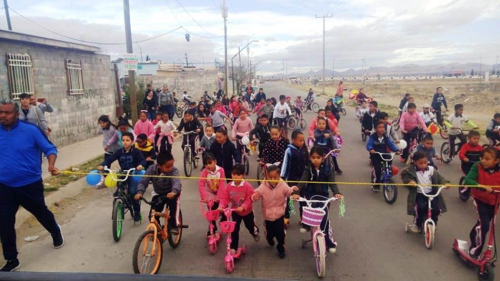 Integrantes de la comunidad escolar de la Primaria “Socorro Villagrán”, ubicada al norte de la ciudad, participaron en una convivencia y bicicletada que se realizó en calles aledañas al plantel.