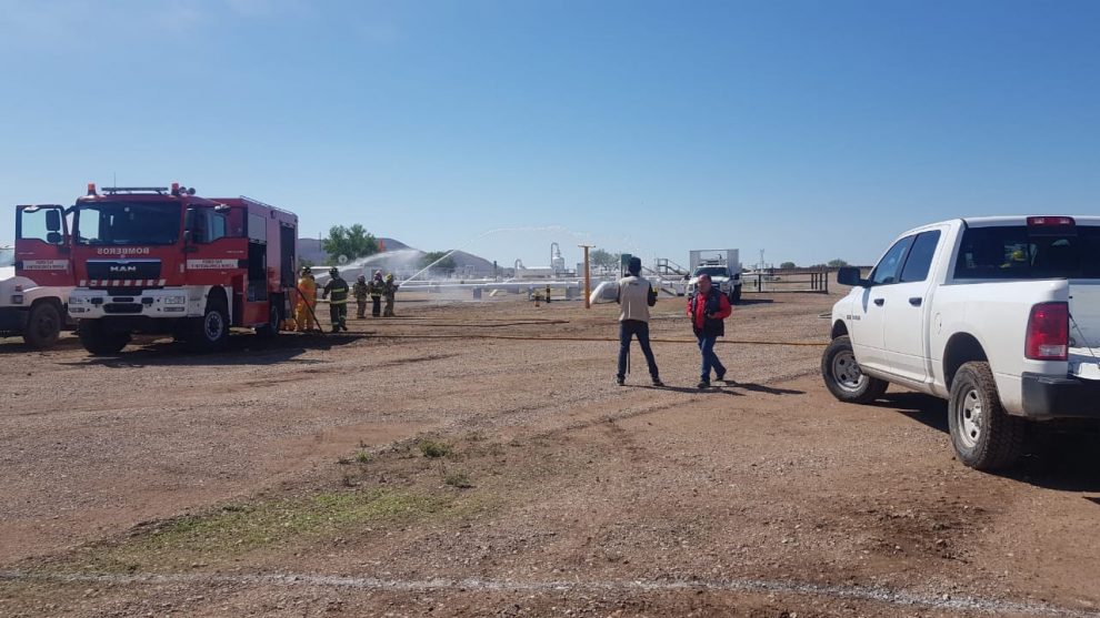 El simulacro consistió en controlar la fuga e incendio de gas de una válvula del gasoducto, así como el resguardo y salvaguarda de un trabajador, que resultó con quemaduras tras el incendio.
