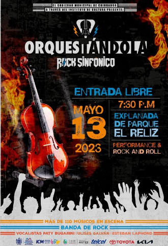 Chihuahua, Chih. A 02 mayo de 2023.- El Gobierno Municipal que encabeza el alcalde Marco Bonilla, a través del Instituto de Cultura del Municipio (ICM), invita a los chihuahuenses el próximo sábado 13 de mayo a la primera edición de “Orquestándola, Rock Sinfónico”, que se llevará a cabo en la explanada del parque El Reliz a partir de las 19:30 horas.