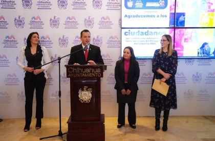 El alcalde, Marco Bonilla Mendoza, dio a conocer los resultados de la consulta del Presupuesto Participativo 2023, el cual tuvo lugar el pasado 15 de enero con la participación de 50 mil 289 chihuahuenses. Para esta edición, se invertirá un total de 198 millones 299 mil 230 pesos para 75 proyectos ganadores que mejorarán la ciudad.