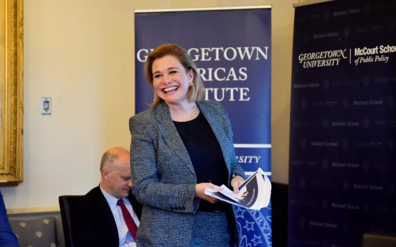 En seguimiento a su gira de trabajo en Washington, Estados Unidos para promover internacionalmente al Estado de Chihuahua, la Gobernadora ofreció una plática a estudiantes de la Universidad de Georgetown en la que puso en contexto al alumnado sobre la importancia de Chihuahua para Estados Unidos y su desarrollo económico.