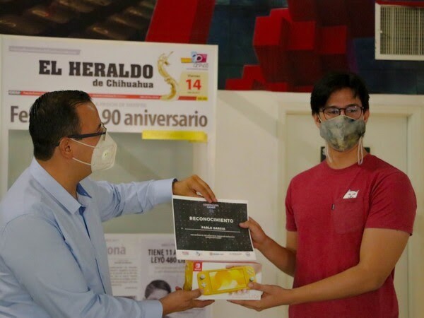 A través de la Dirección de Desarrollo Humano y Educación, en conjunto con el Heraldo de Chihuahua, se entregaron los premios a los ganadores: el primer lugar a Pablo Sáenz, recibió su Nintendo Switch; Javier Ulises Gómez, en segundo lugar, obtuvo una membresía de Switch Online por 1 año; y Jorge Humberto Escárcega, quien quedó en tercer lugar, una membresía de Switch Online por 6 meses.