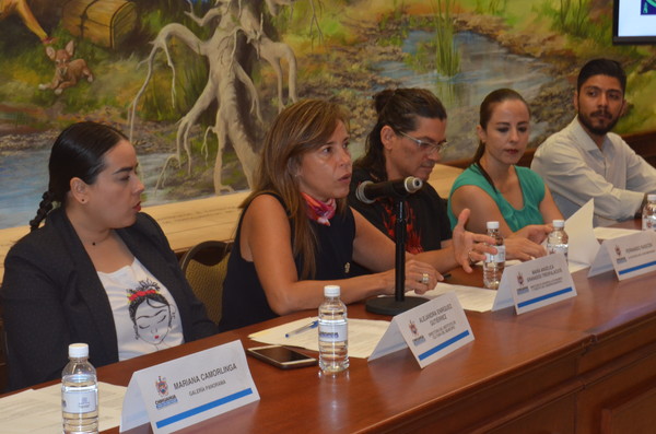 La Directora del Instituto de Cultura del Municipio, Alejandra Enríquez Gutiérrez, en compañía de la Directora de Desarrollo Económico y Turístico, María Granados Trespalacios, y de representantes de las distintas galerías de arte participantes, ofrecieron una conferencia de prensa este martes, para presentar el programa “Faro Norte”, un circuito cultural en el centro histórico, donde la ciudadanía podrá disfrutar de exposiciones plásticas en ocho espacios culturales distintos durante la tarde noche de este próximo sábado.