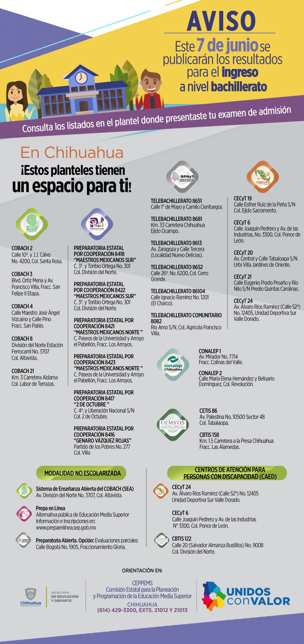 Para mayor información, comunicarse a la CEPPEMS en Chihuahua al (614) 4293300 extensiones 21012 y 21013.