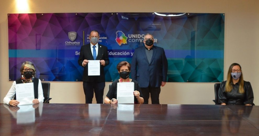 El evento protocolario se efectuó en la sala de juntas de la SEyD, en donde los titulares del Colegio de Bachilleres del Estado de Chihuahua (Cobach), María Teresa Ortuño Gurza; del Colegio de Estudios Científicos y Tecnológicos del Estado de Chihuahua (Cecytech), Ana Belinda Ammes Russek; así como del Colegio Nacional de Educación Profesional Técnica (Conalep), Flavio Filomeno Acosta Cano de los Ríos, recibieron el documento respectivo.