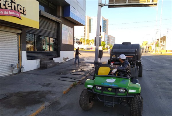 El Gobierno Municipal a través de la Dirección de Servicios Públicos, lleva a cabo de forma constante el lavado a profundidad en las áreas peatonales del Centro Histórico, así como en las banquetas en dónde hay mayor presencia de personas debido principalmente por el transbordo en el transporte público y las actividades comerciales de primera necesidad que aún se prestan en la zona o por razones laborales.
